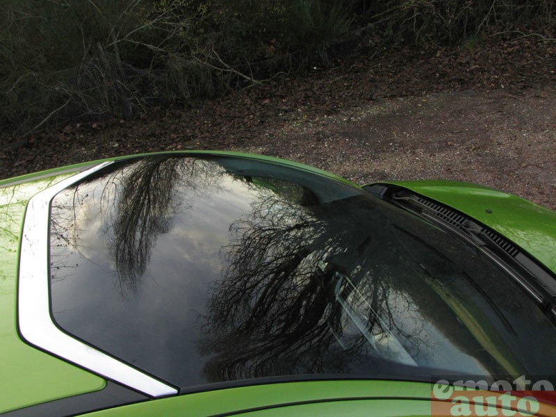 de pare-brise ne sépare l'horizon du ciel au dessus de sa tête, bien que cette zone soit légèrement fumée. La nuit dans la campagne, on roule la tête dans les étoiles sans avoir froid, même l'hiver ! Cette grande luminosité peu toutefois gêner sous le soleil, un rideau coulissant permet alors de s'en protéger. Celui-ci emmène avec lui les pare-soleil de petites tailles. Ils ne contiennent d'ailleurs pas de miroir de courtoisie, alors pour remédier à ce problème, Citroën a eu la bonne idée d'en fournir un amovible qui trouve sa place devant le levier de vitesses. Certes, on peut l'égarer si on ne le replace pas correctement, mais il a l'avantage d'avoir deux miroirs dont un est grossissant.