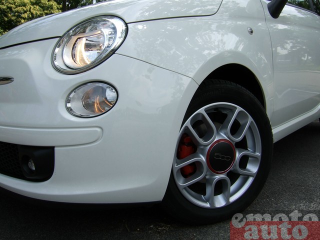 A la conduite, on apprécie rapidement la vivacité de la petite Fiat. Ses dimensions ramassées et ses roues aux "4 coins" assurent des réactions franches et instantanées. Sa direction assistée Dualdrive avec sa fonction "Sport" demande de tenir fermement le volant pour garder une trajectoire précise lorsque le revêtement se dégrade et que le rythme reste sportif. Ce mode peut être déconnecté par un bouton sur la console centrale tout comme peut l'être le contrôle électronique de trajectoire. Le plus surprenant est sans doute les suspensions très fermes et l'arrière qui fait preuve d'une détente très énergique à chaque passage d'une bosse. Si d'une façon générale la 500 s'est bien comportée avec ces suspensions qui lui donnent un petit coté "kart" et limitent le roulis, il est évident que pour le confort ce n'est pas la panacée sur des routes en mauvais état. En revanche, la 500 Sport dévoile rapidement un excellent freinage : avec ses quatre freins à disque et ses étriers peints en rouge pour la touche "racing", il se montre puissant avec une attaque franche qui permet de freiner très tard et même de plus en plus tard à condition de tenir le volant avec force pour maintenir son cap sur les freinages très appuyés.