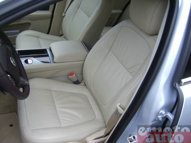 L'intérieur penche pour sa part plus vers le luxe que vers le sport. En dehors du compte-tours de bonne taille, le reste nous plonge dans le cocooning d'une berline 4 portes haut de gamme contrairement à l'extérieur plus proche d'un coupé sport. La ligne ascendante, le maillage de la calandre, les ouïes latérales, les deux sorties d'échappement et les jantes de 19 pouces sont autant d'éléments qui donnent à la XF un dessin résolument dynamique. A l'intérieur, la sellerie cuir offre un accueil de premier ordre, y compris aux 3 passagers adultes qui peuvent prendre place à l'arrière. Même si les sièges à réglage électrique n'enveloppent pas, le maintien est très correct pour une conduite un peu sportive. Le cuir omniprésent sur le volant, les garnitures de portes ou la planche de bord est de deux teintes pour rappeler le coté élancé apprécié de l'extérieur.
